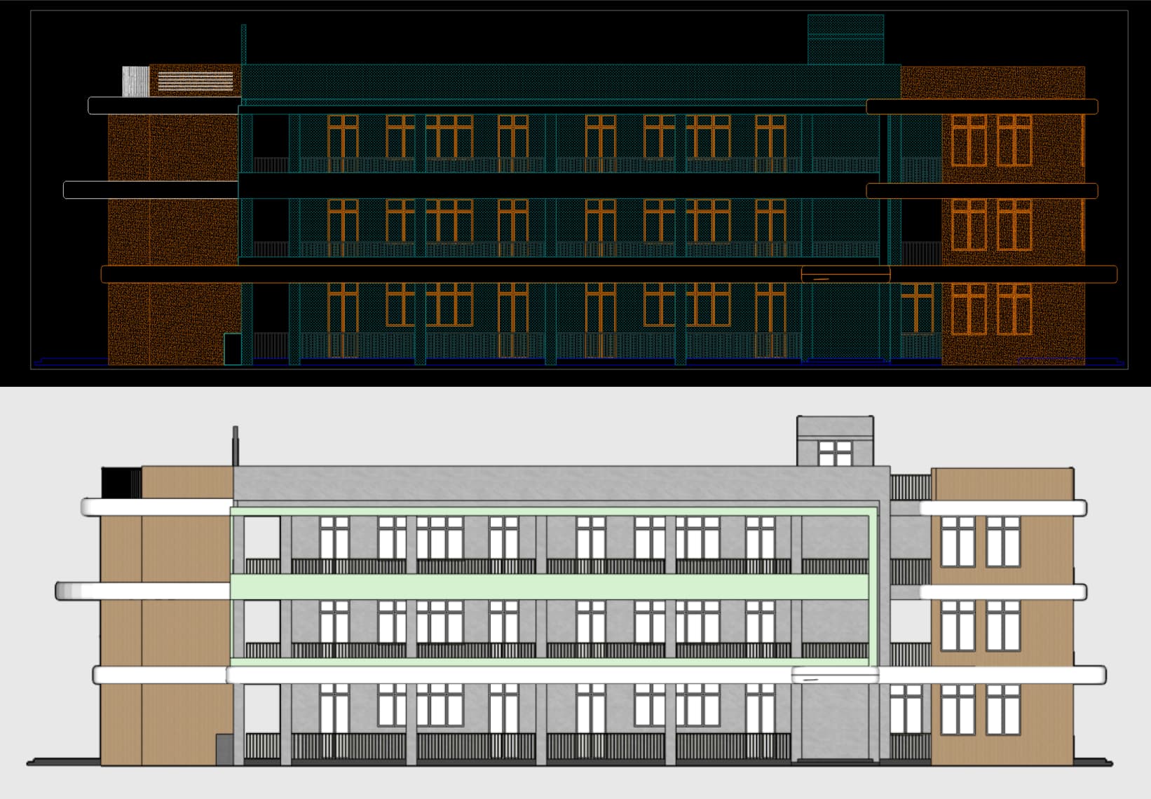 First time using AKE to export elevation. Lines are clean compare to Sketchup Exported DXF file. It allow user to seperate CAD layers based on SU material SO that the window and the wall can be in different layers…